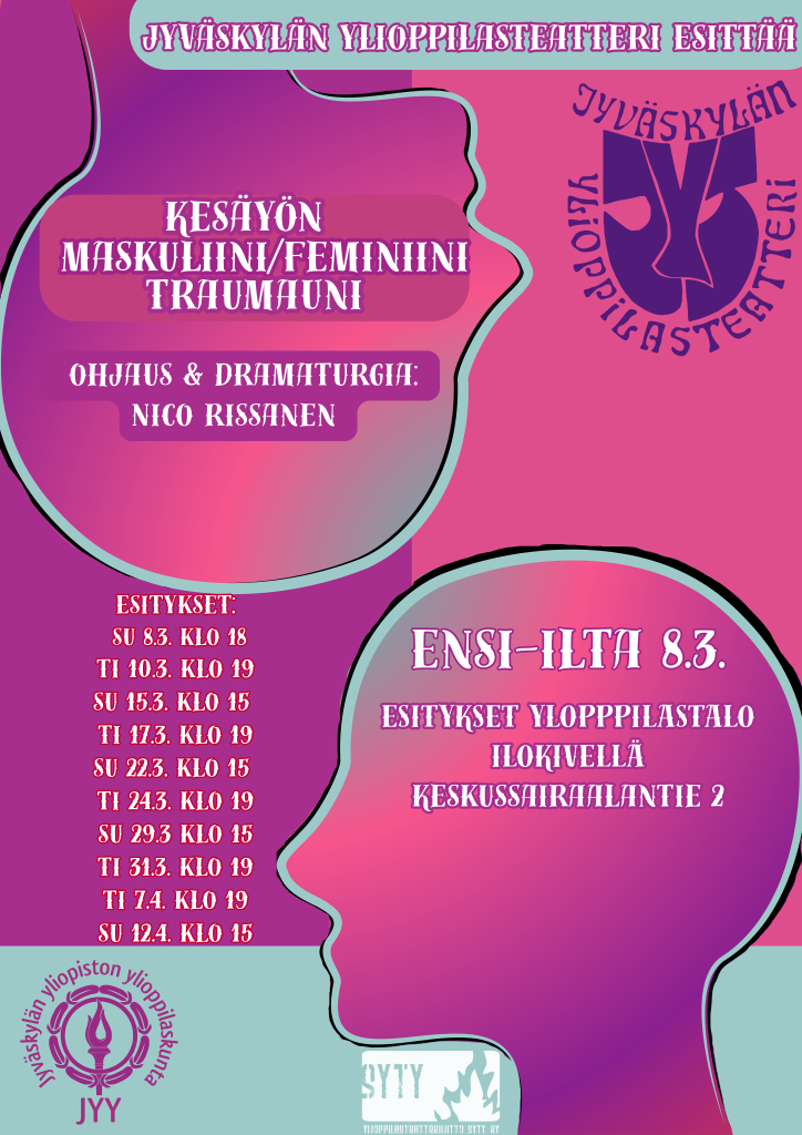 Mitä yhteistä on tarvekeskeisellä http-lauseella, Shakespearen sydämellisen epätoivoisella Helenalla, turvattomuutta peilaavalla soveltavalla esitystaiteella, Godardin 60-luvun pariisilaisella nuorisolla, kehollis-tantrisella läsnäololla ja Jyväskylän ylioppilasteatterin vuoden 2026 uusien jäsenten produktiolla?